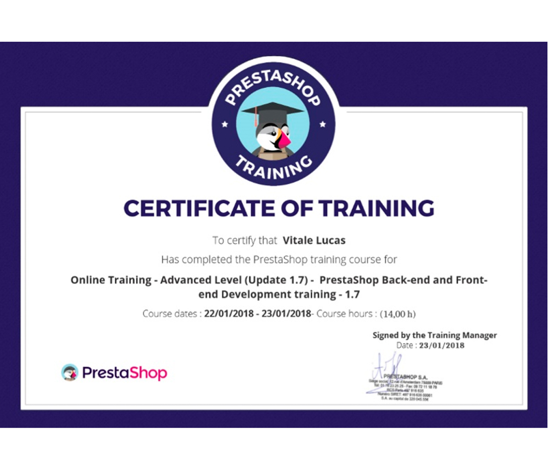 Certificación desarrollador PrestaShop